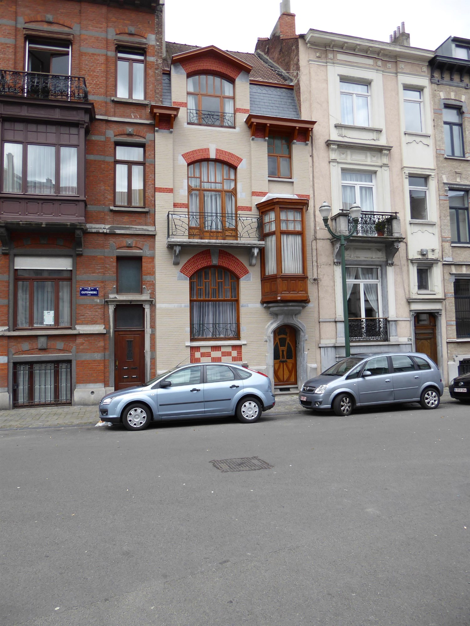 Recouverte d'une peinture blanche homogène, la façade ne laissait plus voir la richesse et la variété de son décor. En cherchant à reconquérir cette variété, le but du projet a été de permettre à la façade de réintégrer sa place auprès de ses consoeurs du quartier, construites également sur le dessin de Van Waesberghe et ayant conservé ces caractéristiques. La restauration des ferronneries et des menuiseries, par des artisans de talent, a rendu à ces éléments leur apparence d'origine, avec notamment des vernis qui mettent en valeur le motif des bois de diverses essences.