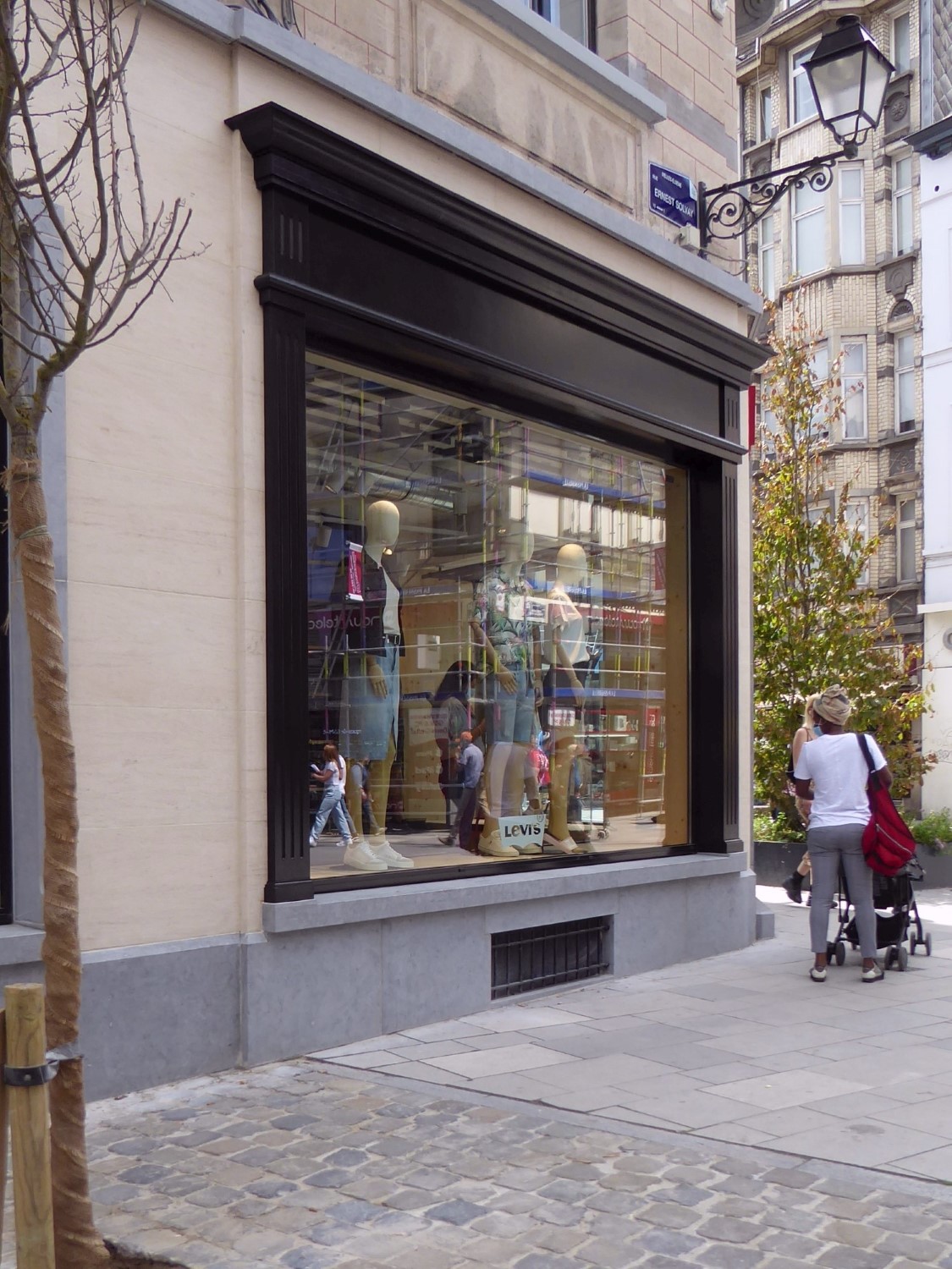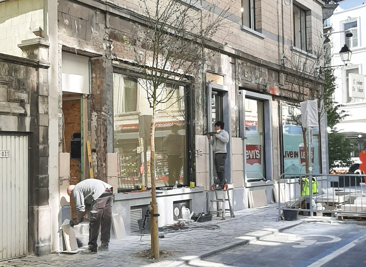 Une grande enseigne de prêt-à-porter souhaite étendre le magasin qu'elle occupe, situé dans une zone de liseré commercial. Le commerce, qui se trouve au rez-de-chaussée d'un immeuble de rapport repris à l'inventaire du patrimoine, va être étendu au premier étage. La cage d'escalier donnant accès aux appartements va être déplacée.