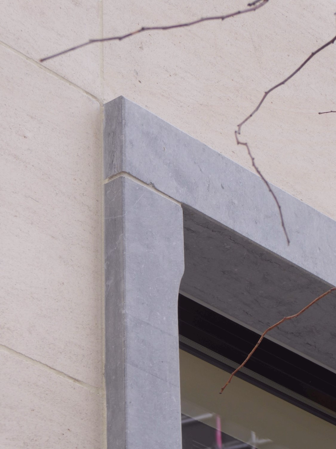 La présente refonte de la façade prévoit de recomposer l'aspect de 1900, dont le parement en pierre et les habillages de baie en bois. Cela permet de rendre sa cohérence architecturale à l'immeuble, et même au-delà, au quartier : celui-ci se trouve en effet marqué par un ensemble de maisons Art-Nouveau de la même époque, situé à quelques pas de là.